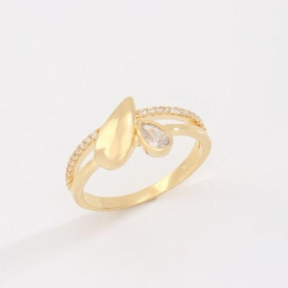 Anel confeccionado em banho de ouro 18 e zircônias.