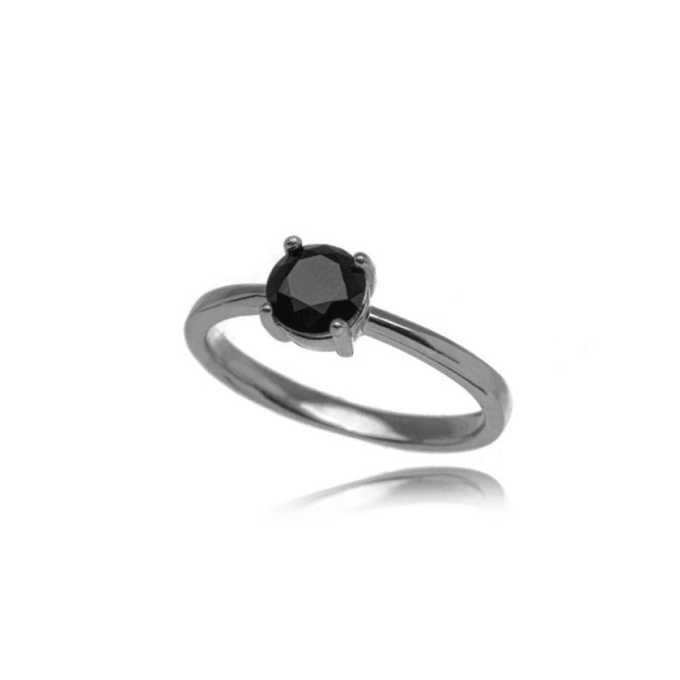 Anel confeccionado em banho de ródio branco e pedra ônix.