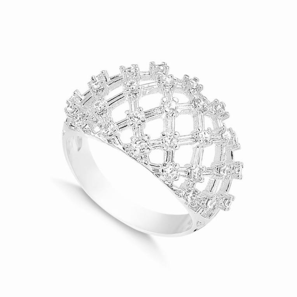 Anel confeccionado em zircônias e banho de ródio branco.