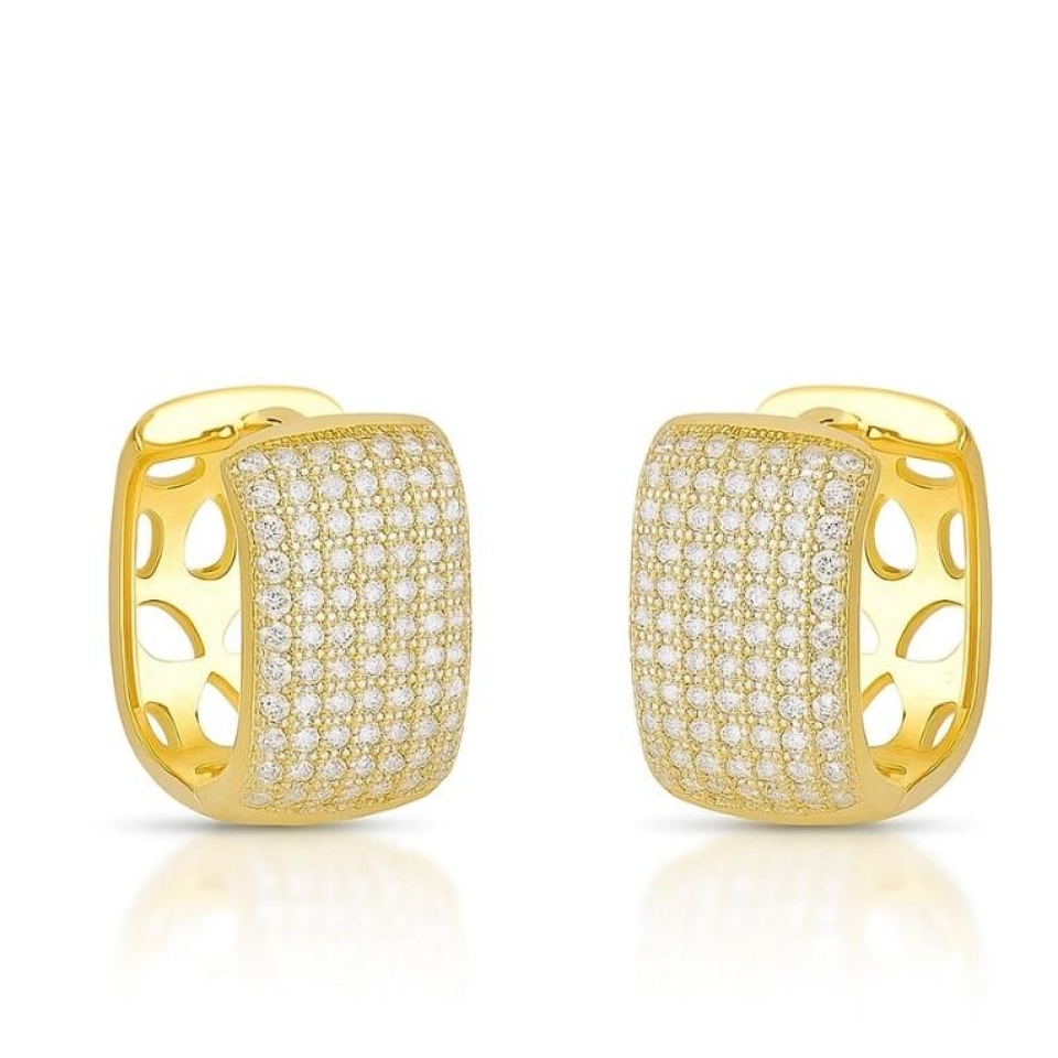 Brinco confeccionado em banho de ouro 18K e microzircônias.