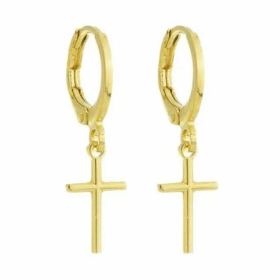 Brinco argolinha cruz em banho de ouro 18K.