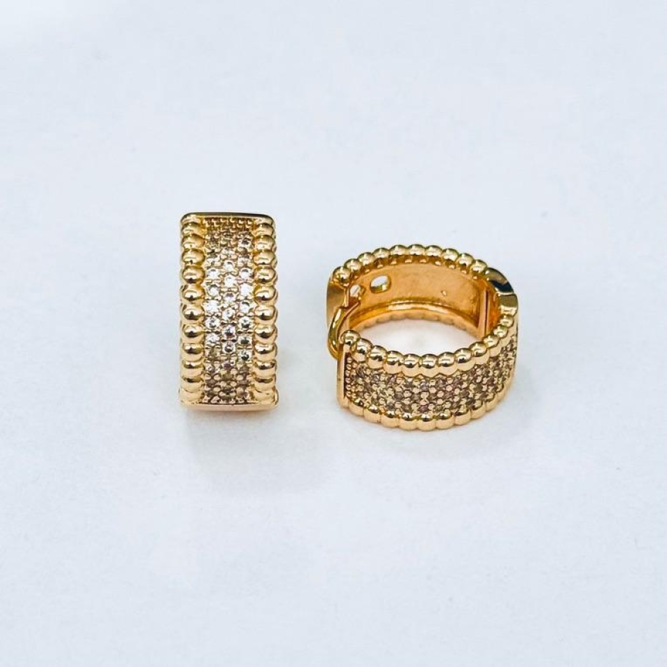 Brinco confeccionado em microzircônias e banho de ouro 18K.