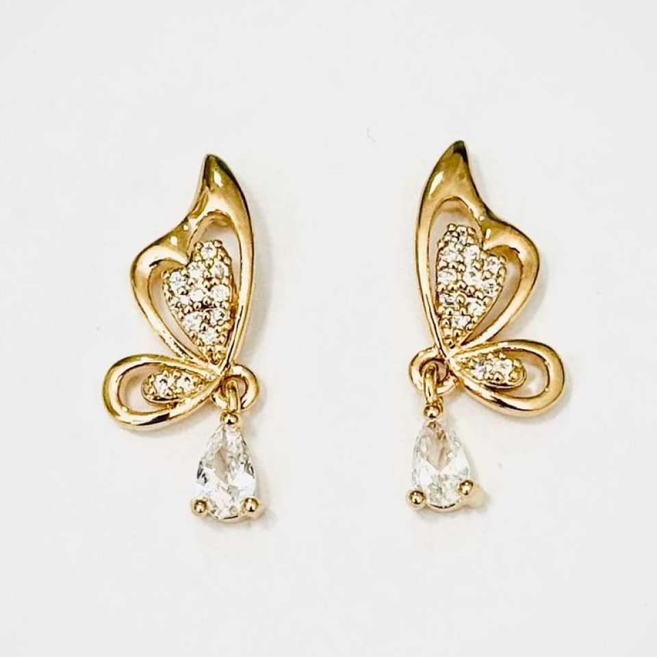 Brinco zircônias confeccionado em banho de ouro 18K.