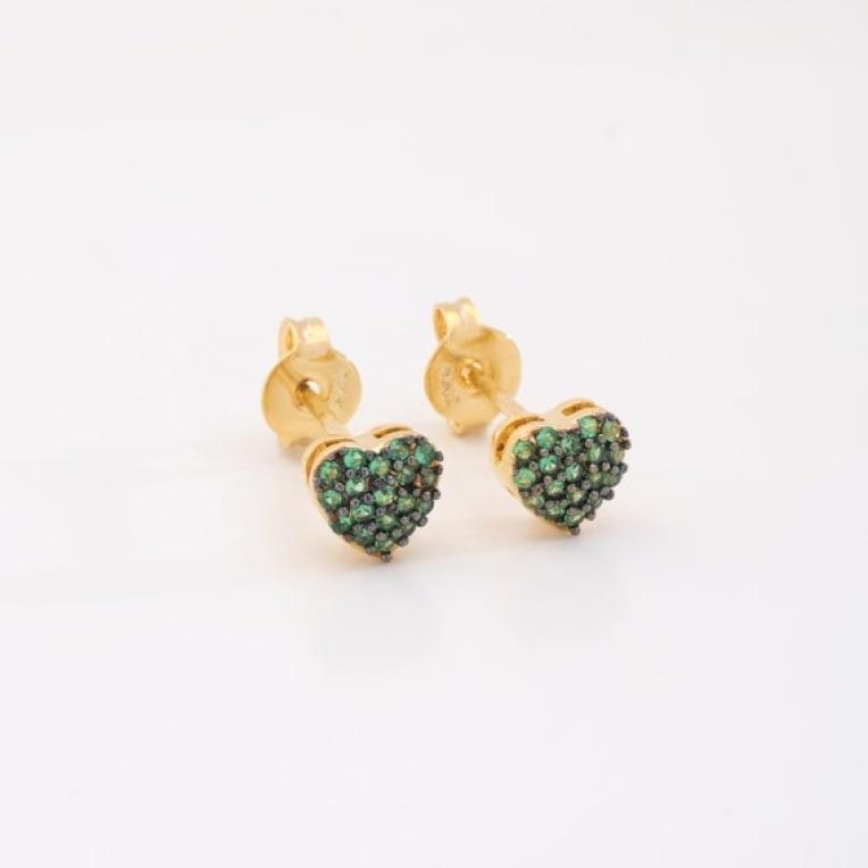 Brinco confeccionado em banho de ouro 18K e zircônias verdes.