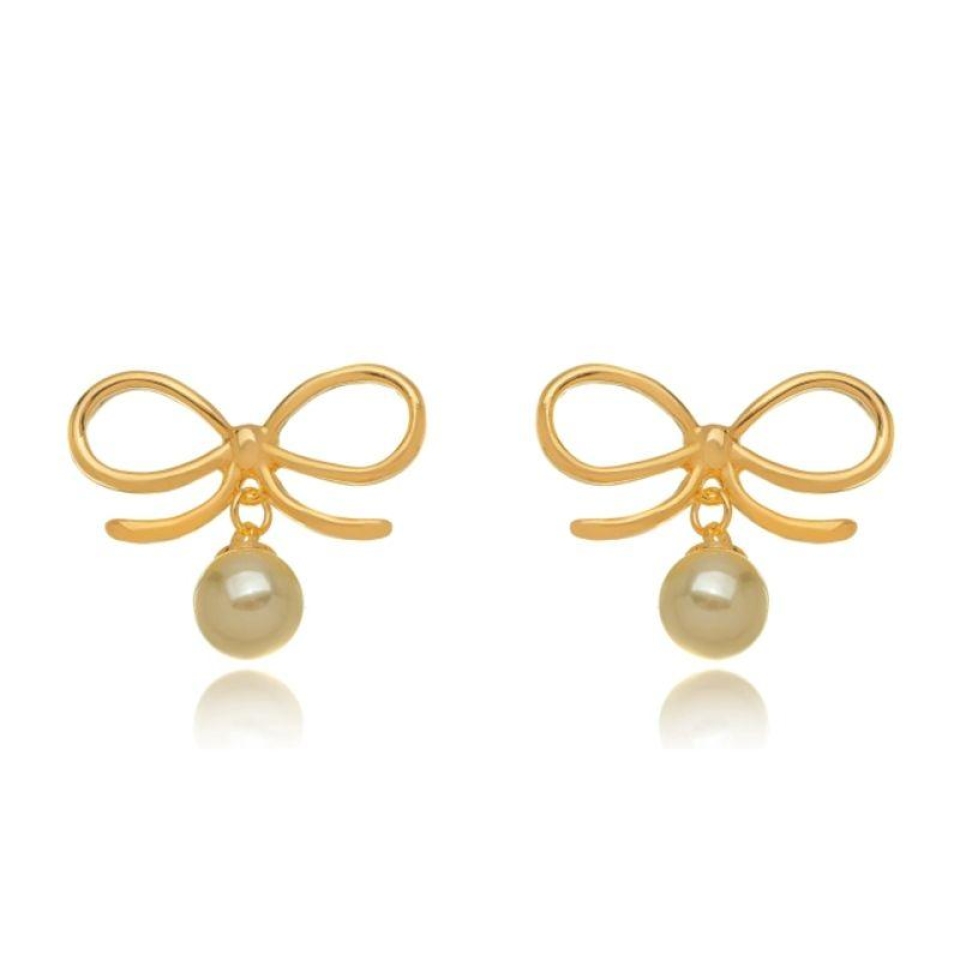 Brinco confeccionado em banho de ouro 18K e pérolas sintéticas.