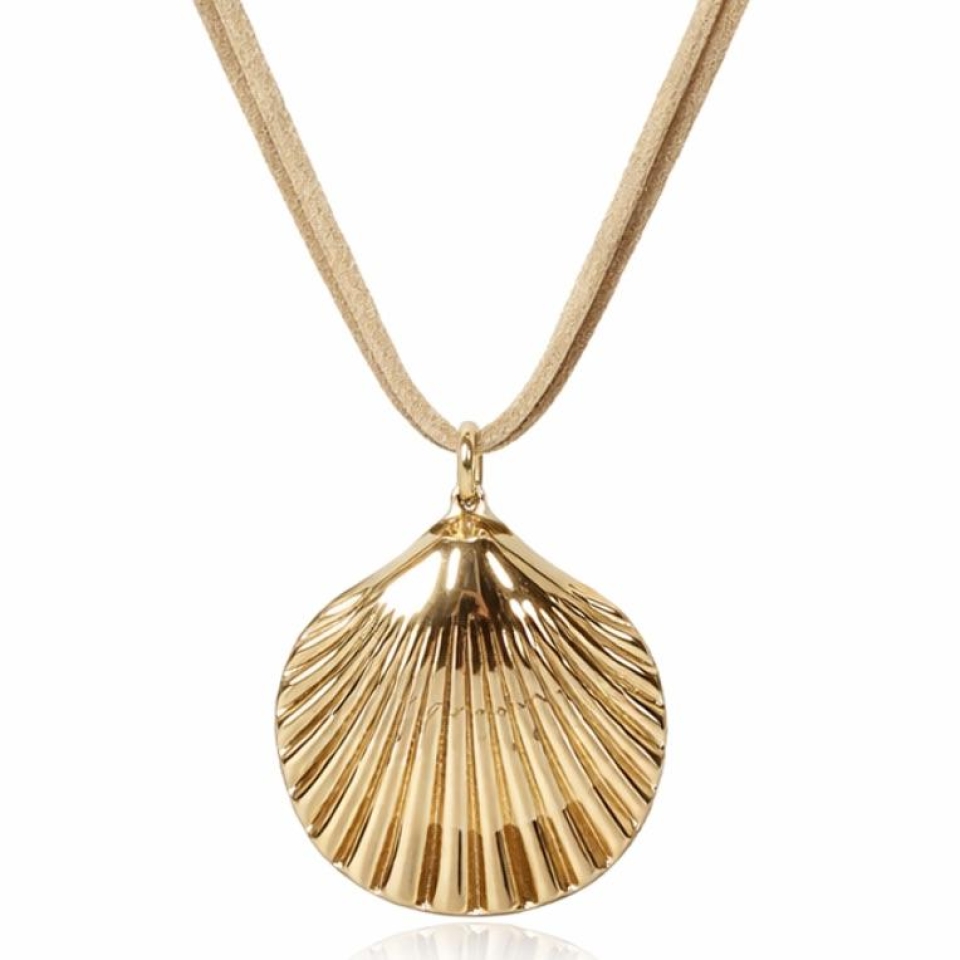 Colar confeccionado em couro e pingente em banho de ouro 18K.