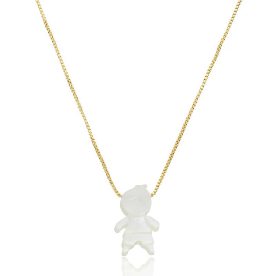 Colar confeccionado em banho de ouro 18K e pingente madrepérola.