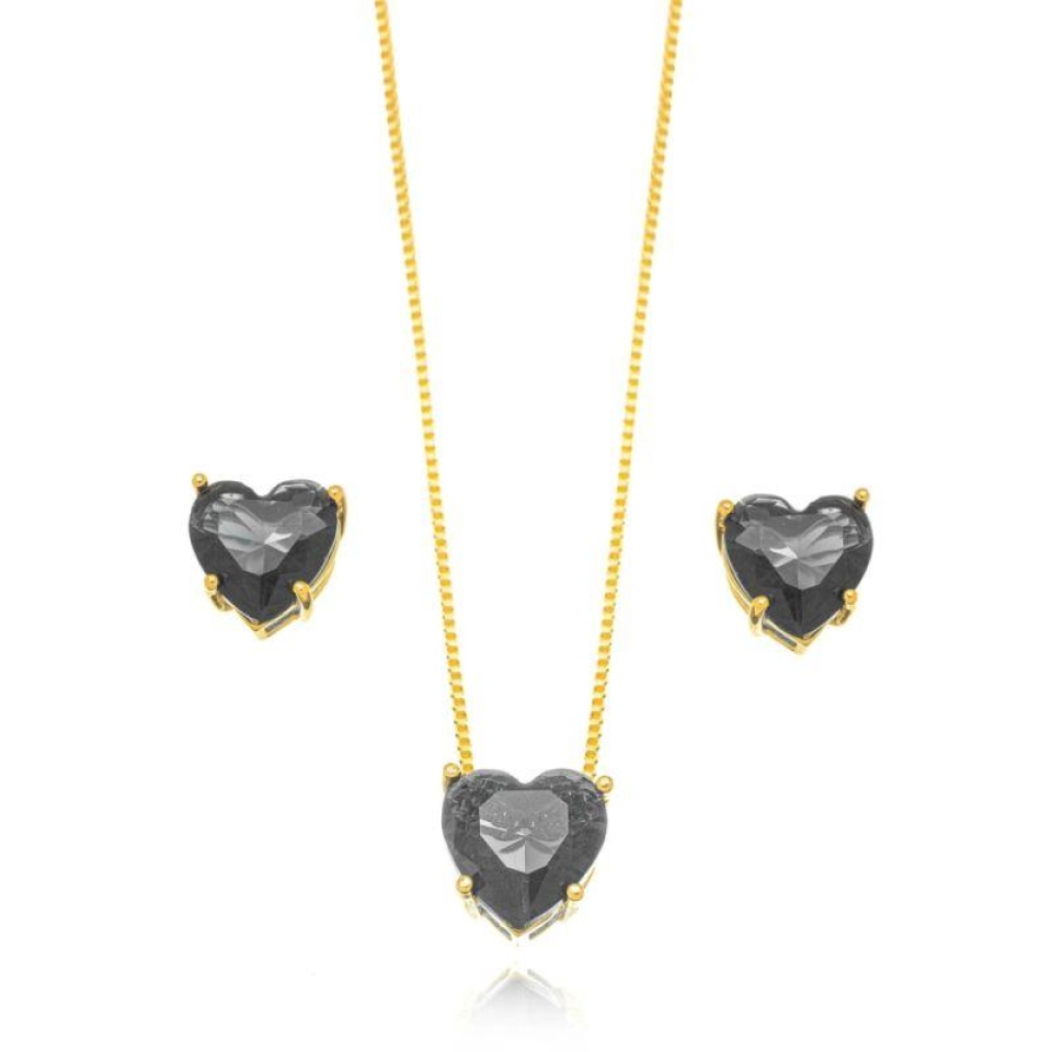 Conjunto confeccionando em banho de ouro 18K e zircõnias.