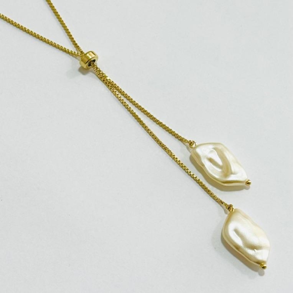 Colar confeccionado em banho de ouro 18K e pérolas sintéticas.