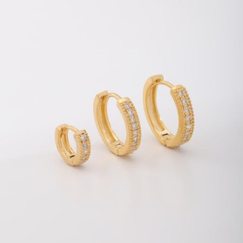 Trio confeccionado em banho de ouro 18K e zircônias.