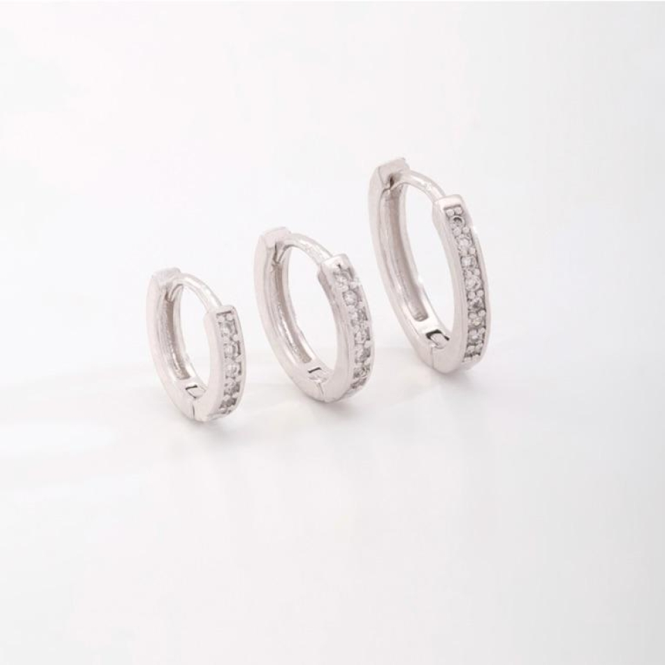 Trio argolinhas zircônias banhadas em ródio branco.