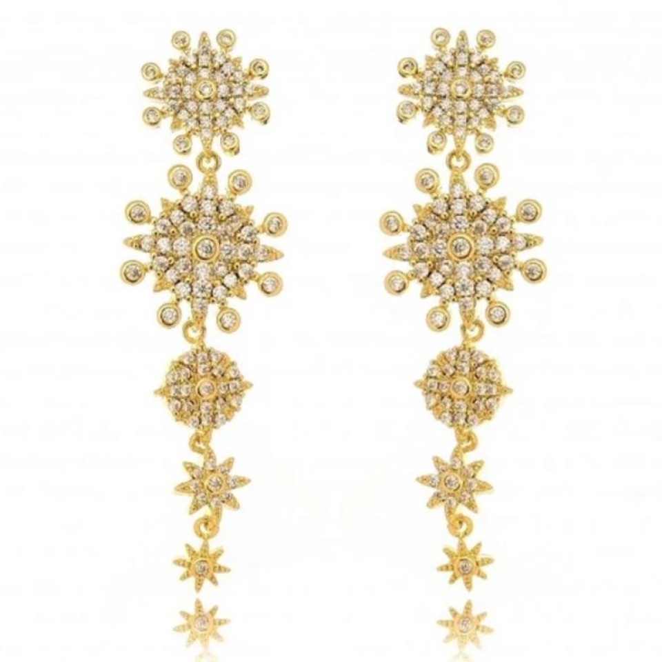 BRINCO GOTA FESTA BASE FLOR COM ZIRCÔNIAS...