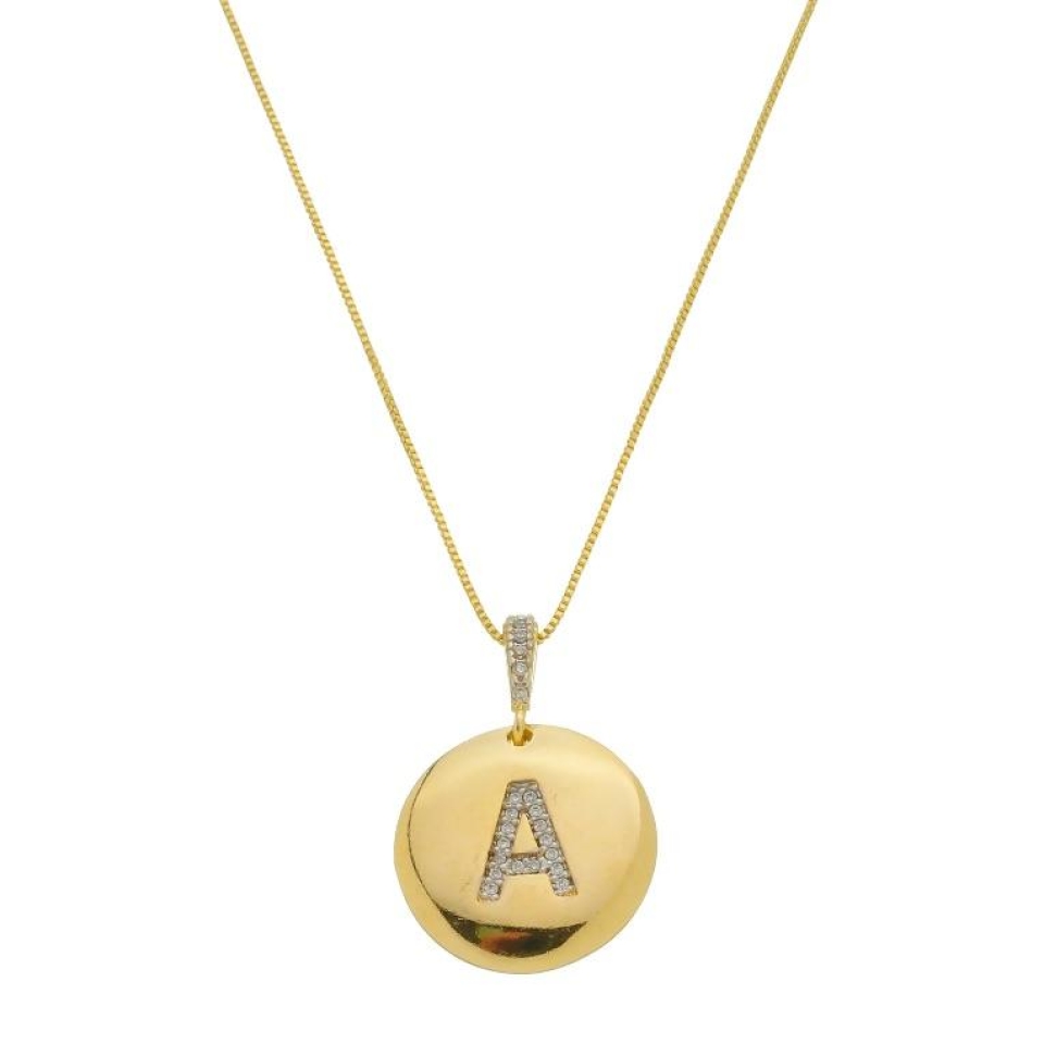 COLAR MEDALHA LETRA A ZIRCÔNIAS...